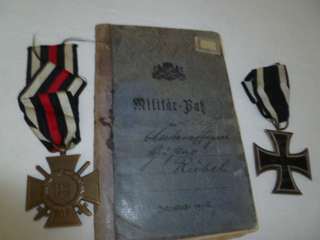 german ww1 miltairepass and ek2and faithful service cross 1st ersatz batt
